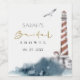 RED DUSKY BLUE LIGHTHOUSE MEER BRAUTPARTY WEINETIKETT