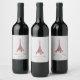 Red Eiffel Tower Damask Wedelweinlabel Weinetikett