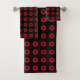 A dramatic repeating pattern featuring vivid red circular emblems, each centered with a stylized black heart. The high‑contrast palette creates a bold, modern look, while the clean grid layout adds structure and rhythm. This design blends intensity and simplicity, offering a contemporary take on love‑themed symbolism with a sleek, eye‑catching edge.