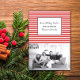 Trendy und stilvoll gestylte Festive Stripes Holiday Foto Card mit einem einfachen, horizontal gestreiften Muster Hintergrund in Rot und Weiß. Diese einfache und moderne Fotokarteneinladung lässt sich leicht an Ihr eigenes Foto und personalisierte Weihnachtsgrüße anpassen. Klicken Sie auf Anpassen, um weitere Anpassungsoptionen zu erhalten. Fotografie © Storytree Studios, Stanford, CA