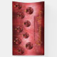 Desteis originelle Illustration von rot-goldgelben Weihnachtsbaubeln, die ein Schneeflockenmuster auf ihnen haben. Der Hintergrund ist ein schöner roter Bukett. Es gibt auch zwei personalisierbare Textbereiche.