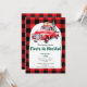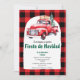 Spanischer Red Truck und Rot und Schwarz Buffalo Karierte Fiesta de Navidad Weihnachts-Party Einladung mit handgezogenem Bogen - Erhältlich als sofortiger digitaler Download.