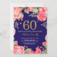 Red Floral 60th Birthday Invitation for Women. Aquarelle Fleurie Botanique. Parties scintillant or. Arrière - plan bleu marine. Pies Roses Fleurs Florales. Anniversaire adulte. Pour plus de personnalisation, cliquez sur le bouton "Customiser" et utilisez notre outil de conception pour modifier ce modèle.