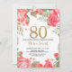 Red Floral 80. Geburtstag Einladung Gold Glitzer