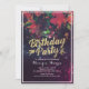 Geburtstagsparty Einladungs-Card Vorlagen - Burgund Marsala Red Watercolor Floral und Imitate Gold Foil Script auf Lila Sparkle Bokeh Licht Hintergrund. Ein perfektes Design für Ihren großen Tag! Alle Textstile, Farben, Größen können an Ihre Bedürfnisse angepasst werden.
