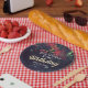 Happy Birthday Party Paper Plate Vorlagen - Elegante Burgundy Marsala Rote Wasserfarbe Floral und Imitate Gold Foil Script auf Lila Sparkle Bokeh Licht Hintergrund. Ein perfektes Design für Ihren großen Tag! Alle Textstile, Farben, Größen können an Ihre Bedürfnisse angepasst werden.