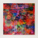 Lebhafte Farben und aufwändige Muster schaffen eine abstrakte Szene, die mit wirbelnden Formen und Blumenmotiven gefüllt ist. Das Zusammenspiel von warmen und coolen Farbtönen und texturierten Schichten verleiht Tiefe und Bewegung.