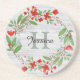 Red Flower Wreath Rustic Personalised Getränkeuntersetzer