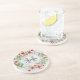 Pretty personalised sandstone coaster with watercolor floral wreath on rustic wood (simulated in print) background.