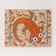 Spaß, verspielte große mit Augen Orangenpfeifen mit roten Flecken spielen auf dem Waldboden zwischen Blätter, Blume und bunten Polka Punkten. Entdecken Sie die lebhaften Farbtöne des Orange Newt, das seit 1985 ein Symbol für die vielfältige Tierwelt des Staat ist. Whimsikaler, farbiger, kleiner Eidechsen-Cartoon mit vielen Polka-Punkten und Blätter.