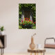 Die hübsche Red Geranium Window Box Printwerbung ist eine nachdenkliche Blumengeschenkidee für Blume-, Gärtner- oder Floristen. Dieser wunderschöne Blumendruck zeigt ein landschaftliches Naturfoto eines Schaufensters, gefüllt mit Rot-Geran-Blume-Blüten mit grünen Weinreben, Blätter und Blattwerk.