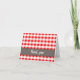 Südliches Land inspiriert Red Gingham Dankeschön Karte mit "danke" in Weiß über eine braune Leinwand Textur Abbildung, auf einem rot-weiß Gingham Muster. Das Innere ist personalisiert mit Ihrer eigenen Dankesbotschaft. Sie können den Vorlagentext auch ganz einfach löschen, um die Karte(n) frei verlassen, damit Sie Ihre eigenen Dankesgefühle handschriftlich feststellen können. Diese Karten mit ihrem klassischen Gingham-Muster sind perfekt für Baby Shower-Feiern. Matching Postage (separat erworbene Artikel):