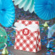 Niedliches Gingham-Gastgeschenk mit karierten Mustern. Fügen Sie Ihre eigene Monografie oder Nachricht hinzu, indem Sie sie anpassen. Gutes Geschenk für Grill, Picknick, Probe Dinner, oder jedes lässige Party.Original Illustration von pj_design / jammy Design. Sehen Sie bitte in meinem Geschäft nach.