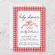 Red Gingham Cute Bow Handwriting Baby Shower Einladung