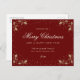 Elegante rote und goldene Urlaubskarte mit Schnee, Heiligen und Beeren auf rotem Hintergrund. Diese Postkarte für Ihren Urlaub online personalisieren.