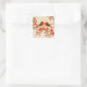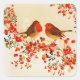 Red Gold Winter Birds Holly Berry Branches Quadratischer Aufkleber
