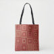 Ein Muster von grandiosen Quadraten in Rottönen ist ein lustiges Design für aktive Senioren und ihre erwachsenen Kinder.
