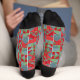 Red, gray, and green geometric pattern. Colorful ornament with triangles.
