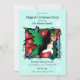 Eine schwarzhaarige Fee mit roten und grünen Feenflügeln. Schneeflocken, rote Poinsettien und blaue Schmetterlinge umringt.