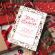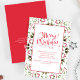 With Merry Christmas at your holiday party, with these cute calligraphy script invitations, with holiday red and green, and botanical holly berries, rustic pinecones pine cones, also featuring elegant typography design, a stylish winter pattern, perfect for any celebration, a whimsical cute xmas parties invite