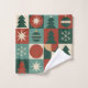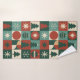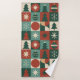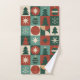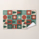 Entspannen Sie in Ihrem Bad mit diesem modernen, roten und grünen Badehandtuch, das Mitte des Jahrhunderts ein festliches Schachmuster mit geometrischen Formen, Kiefern, Schneeflocken und atomaren Sternexplosionen aufweist. Ein trendiges, stilvolles und elegantes Retro-Design, das sich perfekt für die Winter- und Herbstdekoration eignet.