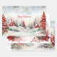Dieses Set von drei Geschenkpapier-Blätter hat ähnliche, aber nicht identische, Aquarellbilder Weihnachtszenen von rustikalen Landhäusern, roten und grünen Kiefern und skurrile Verzierungen in einer Waldlandschaft. Das Skript "Frohe Weihnachten" ist bearbeitbar. Sie können verlassen, wie es ist, oder ändern Sie einen oder mehrere zu einem anderen kurzen Gruß oder Sprichwort, oder Ihren Familiennamen und Datum. Wenn Sie es vorziehen, können Sie den Gruß ganz aus der Szene löschen.