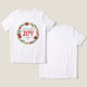 Christmas outfit featuring a poinsettia Christmas wreath in gold, red and green with family name to personalize with the current year and a heartfelt message of peace, love, believe and joy. Share with your loved ones this holiday season.