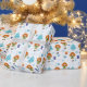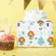 Dieses bezaubernde Irish Dance Thema Weihnachtsfeiertag verpackt Papier Design bietet eine niedliche rot-haarige irische Tänzerin in einem grün-gelben Solo-Tanz in einem Winter Wunderland Muster von Schneeflocken, ein Weihnachtsbaum und Geschenke tanzen. Einige Grafiken von MUJKA.