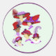 Dieser bezaubernde Aufkleber hat Viktorianische Damen mit roten Hüten und lila Schnitten von Rose, Federn und Bögen