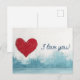 Dies ist eine niedliche Liebe oder Valentinstag Postkarte mit einem roten Herz, das über blauem und beigem Hintergrund schwebt. Sie können den Standardtext "I Liebe you!" anpassen.