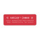 The Red Heart Wedding Return Address Labels feature white typewriter-style text with playful heart accents on a bright red background. Perfect for wedding invitations, Valentine’s cards, or couples’ stationery, these personalized return address labels add a cheerful and romantic touch to every envelope.