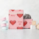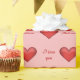 Desteis rote Herzenform-Abbildung auf einer rot-rosa Hintergrundfarbe. Es gibt auch Text, der lautet: "I Liebe you" zusammen mit einem personalisierbaren Textbereich für einen Namen. Ideal für den Valentinstag, um ein Geschenk für diesen besonderen Menschen in Ihrem Leben zu verpacken, zum Beispiel.