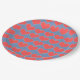 Rote handwerkliche Herzen mit Stich-Effekt auf blauem Hintergrund. Papierteller.