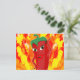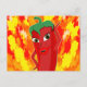 Ein roter und scharfer Pfefferkarikaturencharakter. Originelles Design. Feuer Flammen im Hintergrund. Benutzerdefinierte Postkarten. Geschenkidee für die Liebhaber von würzigen Speisen.