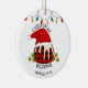Red Kariert Buffalo Weihnachten Pudding Ornament mit CUSTOMIZABLE TEXT, die Weihnachts-Segnungen von uns allen liest. Das Design zeigt ein Weihnachtskuscheln in rot und schwarz Büffel kariert, mit roter Weihnachtsmannmütze und festlichen Weihnachtsbeleuchtung und heilig. Dieses Weihnachtsschmuck würde zu einem großen festlichen Ornament für Familie, Freunde und Kunden. Matching Ugly Weihnachtspulli verfügbar.