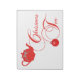 This pretty Christmas tea party notepad feature elegant christmas ball ornaments and teapot covered in red lace with red bows and silver trimming on a white background. These notepad pages can be used for inexpensive, elegant placemats for smaller tea party plate or other table decorations. The elegant red lace motiv of interlacing stars and flowers is reminiscent of the ancient craft of lace-making. We specialize in custom-made designs, contact us if you would like a unique christmas tea made-to-order layout using this lovely design.