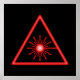 Schwarzes Poster mit einem leuchtend roten 3D-Effekt-Laserwarnsymbol.