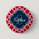 Red Lattice Pattern Navy Monogram Button