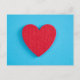 Dieses Design zeichnet sich durch ein leuchtend rotes Herz aus, das ursprünglich aus Filz hergestellt wurde; es ist Set vor einem hellblauen Hintergrund.