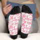 Diese Valentinsocken haben ein lustiges Muster des Wortes "LIEBE" in verschiedenen Schriftart. Der rote Text wird auf einem weißen Hintergrund wiederholt. Niedlich für den Valentinstag, Verlobungen, Hochzeiten und Jubiläen.