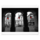 Brunnen in Lyon, Frankreich, gerahmt von Arkaden und Hängelampen