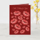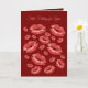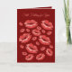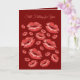 A bold, pop-art pattern fills the frame: dozens of stylized lip prints. The lips vary in size and orientation, some full and wide, others small and puckered, creating a lively, rhythmic scatter rather than a rigid repeat. Each print looks hand-stamped. A lively, rhythmic scatter of hand-stamped Valentine's Day lipstick lip prints. Uneven smudges add a sense of depth. The high-contrast color makes the composition feel modern, mischievous, energetic, loud, flirtatious, and unapologetically fun.