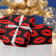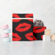 Red Lipstick Kiss Pattern Black Wrapping Paper Geschenkpapier
