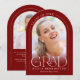 Diese minimalistische Ankündigung des Abschlusses in Rot bietet einen zarten Bogenrahmen, 2 Fotovorlagen und eine elegante moderne Typografie.