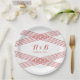 Einfache und elegante moderne Deko Wedding Paper Teller mit einem gestreiften, kreuz-kreuz gestreiften Deko Design in Rot. Diese klassischen Teller lassen sich einfach mit Ihren Hochzeitsdetails abstimmen. Klicken Sie für weitere Anpassungsoptionen auf die Schaltfläche Anpassen.