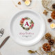 Red Monogram Greenery Pink Wreath Christmas Pappteller
