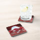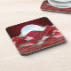 Abstraktes Landschaftsdesign in verschiedenen Rottönen mit einem Mondschein, Hügeln, Bäumen, Wolken und Vögeln.