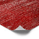 Abstraktes Landschaftsdesign in verschiedenen Rottönen mit einem Mondschein, Hügeln, Bäumen, Wolken und Vögeln.