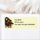 Ein Rücksendetikett mit vielen roten Pilzen mit weißen Punkten und blass Stielen.