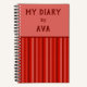 Geben Sie Ihrem Tagebuch die berufliche Behandlung mit einem echten Titel und mit einem Stern! Design zeigt den Titel und Autor-Kredit auf einem roten Hintergrund über einem Abschnitt von vertikalen Streifen in koordinierten Tönen. Die Rückseite hat die gleichen Streifen in einer bunten Palette.